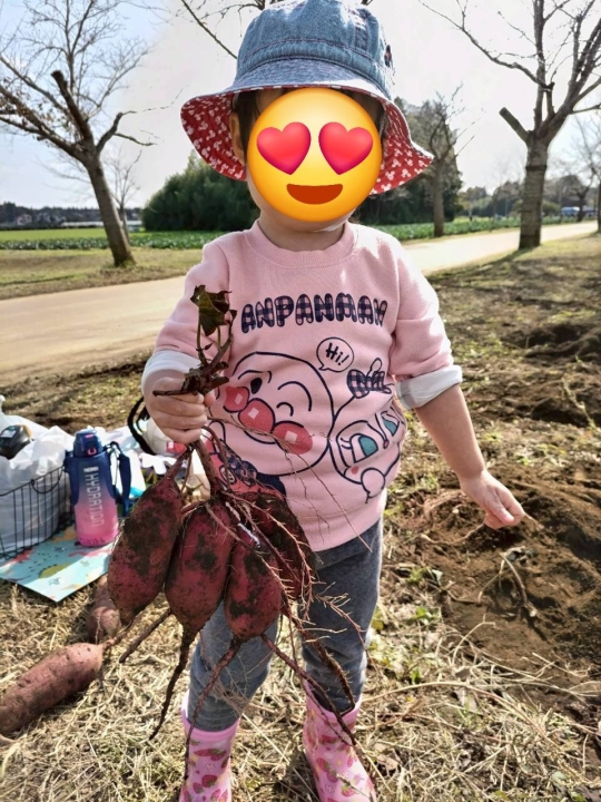 大好きなサツマイモをたくさん掘りました。畑の歩きにくさも日頃のバランスサーキットの効果か・・・元気に歩き回っていました。