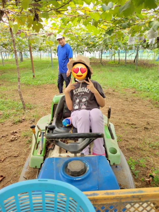 香取市にあるぶどう園さんへぶどう収穫体験にいきました。大きな巨峰を食べて、「あま~い‼」と大喜び🥰その後収穫へ…大きいので、ふたり組で協力して収穫できました。