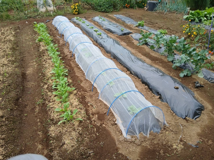 ミニ白菜のお引越しが終わりスクスクと育っていますが・・・虫が発生!!!駆除しなければ。ネットをして防ぐことにしました。無事でいてください・・