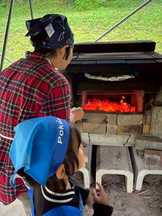10月の食育はアウトドアクッキング!Pizza作りに挑戦!