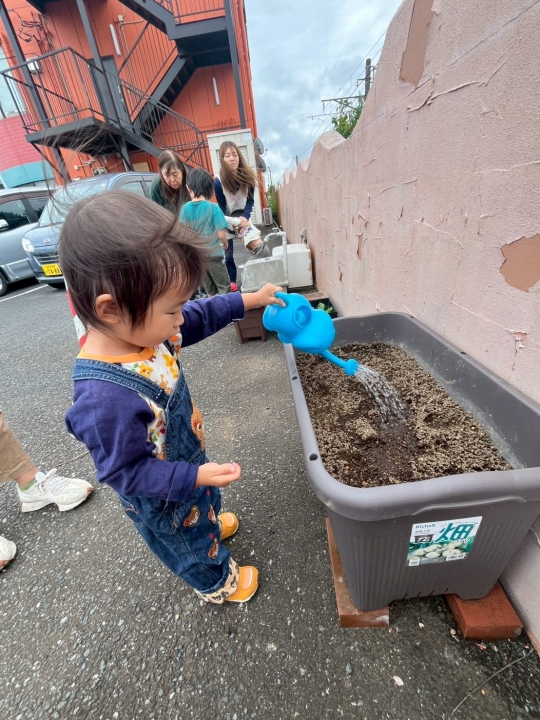 小さなお友だちは、プランターにラディッシュの種を蒔きました。小さな手に種を持って、上手に種を蒔けました。順番を守ってぞうさんのジョウロで、お水も撒けましたよ(⌒∇⌒)素晴らしい!・・・可愛すぎます🥰