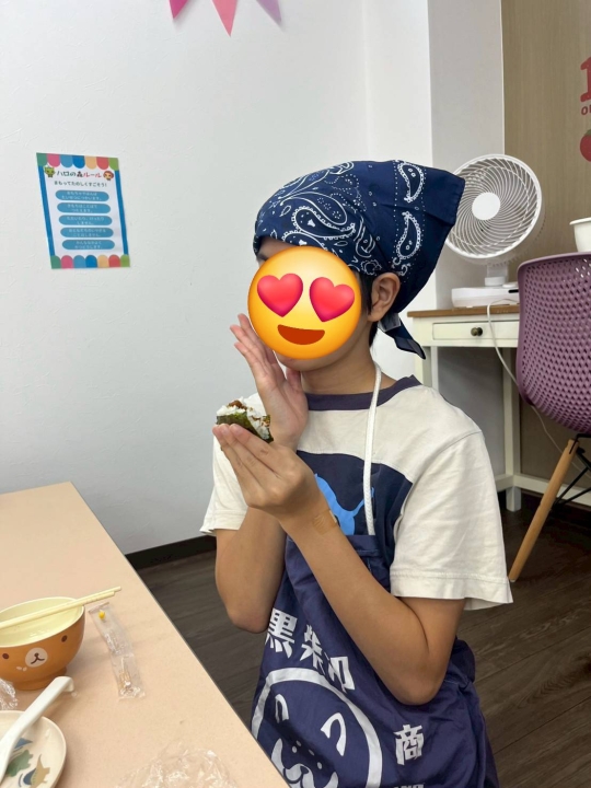 もちろん、栄養の学びもしました。おにぎりを握る感触も体験しました。それにしても・・手があつい(笑)