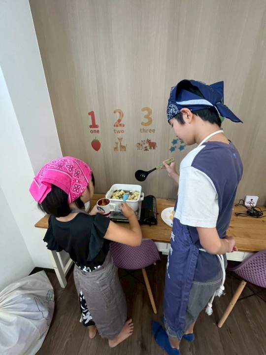 粉をこねたり、野菜を切ったりトッピングしたり小さな子も立派にできましたよ!